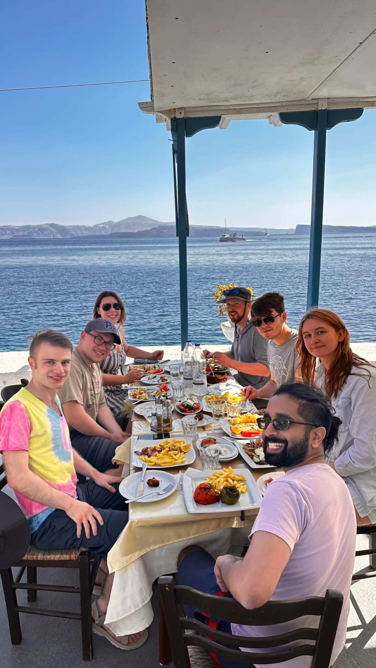 savor the breathtaking sunset against the backdrop of Santorini’s mesmerizing views.